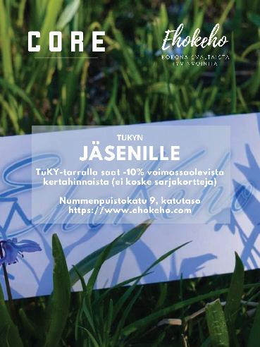 CORE is our own corporate relations team, and their work shows all over our events – an our overalls! TuKY's Sales Manager leads the 13-person team, with representatives for each our committees, our magazine KYliste as well as specialty jobs such as the project and bar coordinators. CORE organizes a wide array of different business excursions, dinners and workshops with companies, where our students can meet graduates, network and hone their skills. CORE is also in charge of our beloved overalls and plenty of member benefits for our members.