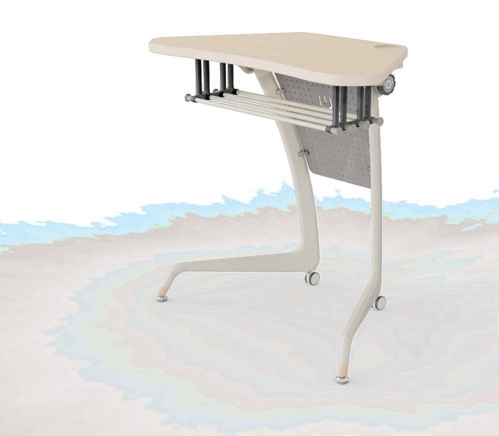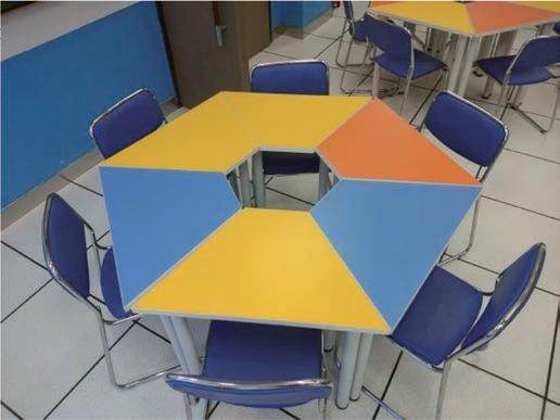 テーブルトップは120°二等辺台形の形にして 、ニーズに応じて、自由の形に組み合わせる のは可能になる。効果的な学習スペースの促 成を役に立つ。