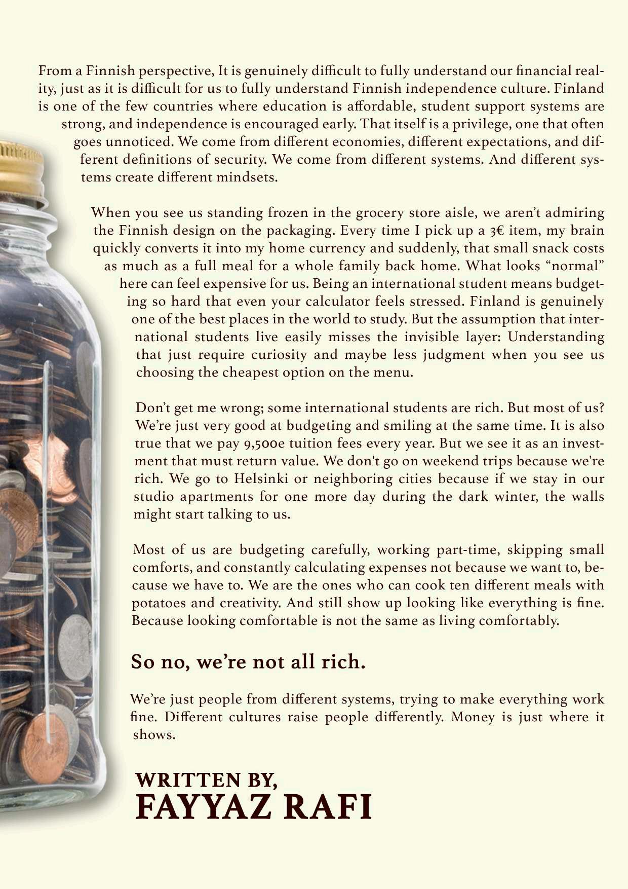 However, being the largest guild in the city, Enklaavi’s culture and circles tend to be quite centered around us business students without mentioning at times being isolated from other guilds... It’s of course important that a business guild has their own “kylteri” identity but it’s very refreshing to get to know other guilds and their cultures as well!
