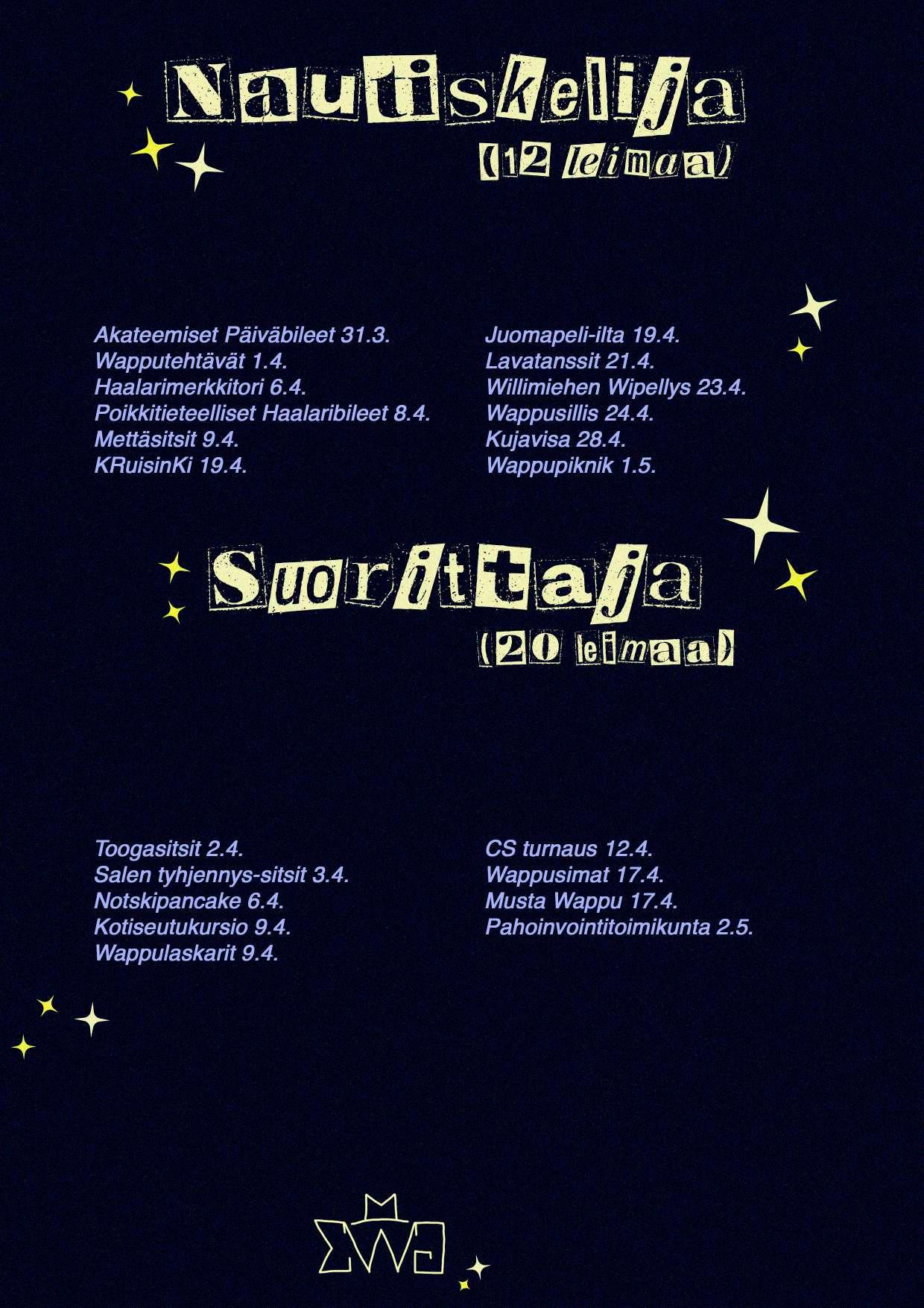 30.4. Kurkipatsaiden lakitus & Kaste, Wappuaaton bileet