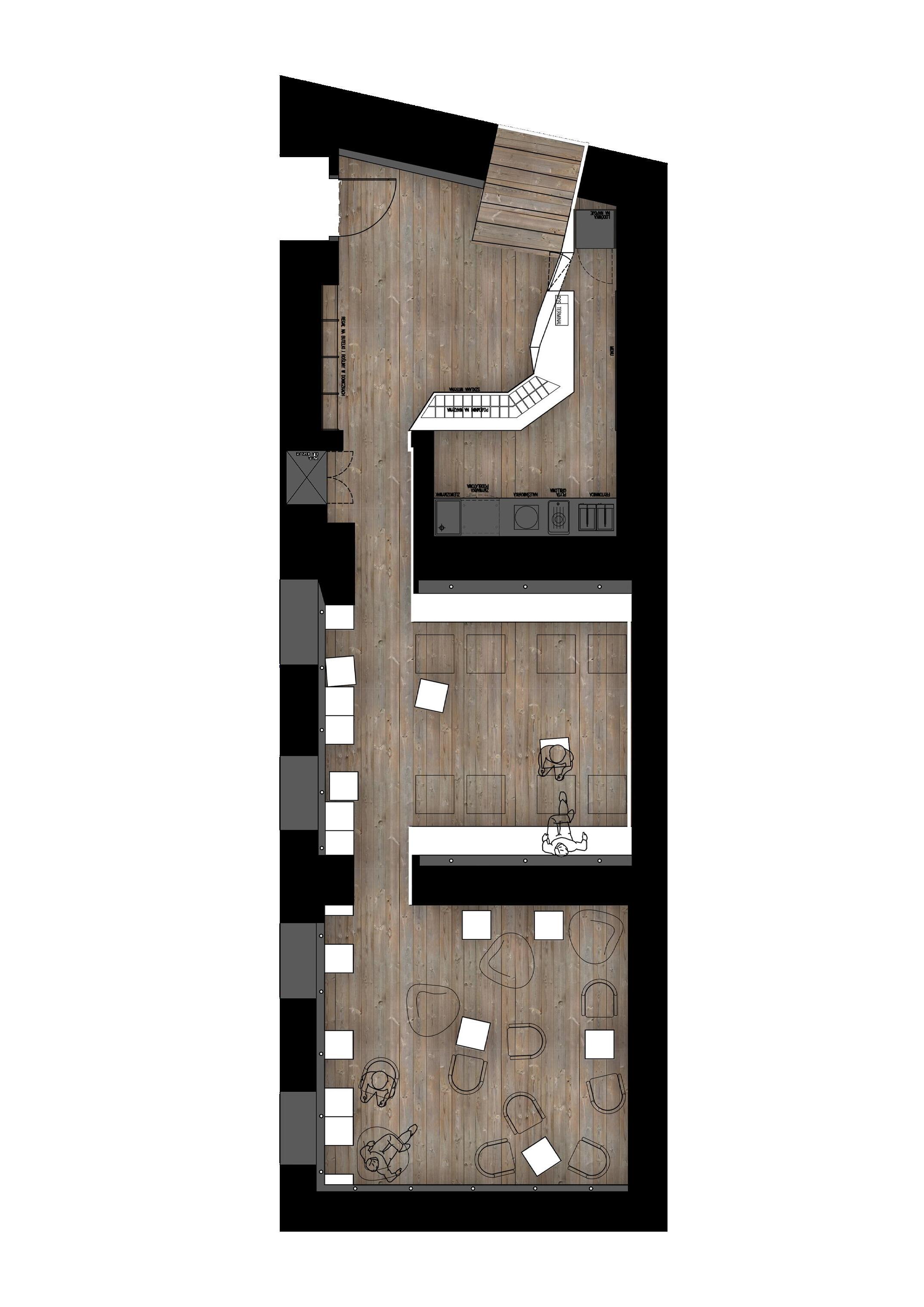 Co-creation of interior concept. Work on a form and functional organization. 3d model making (Sketchup).