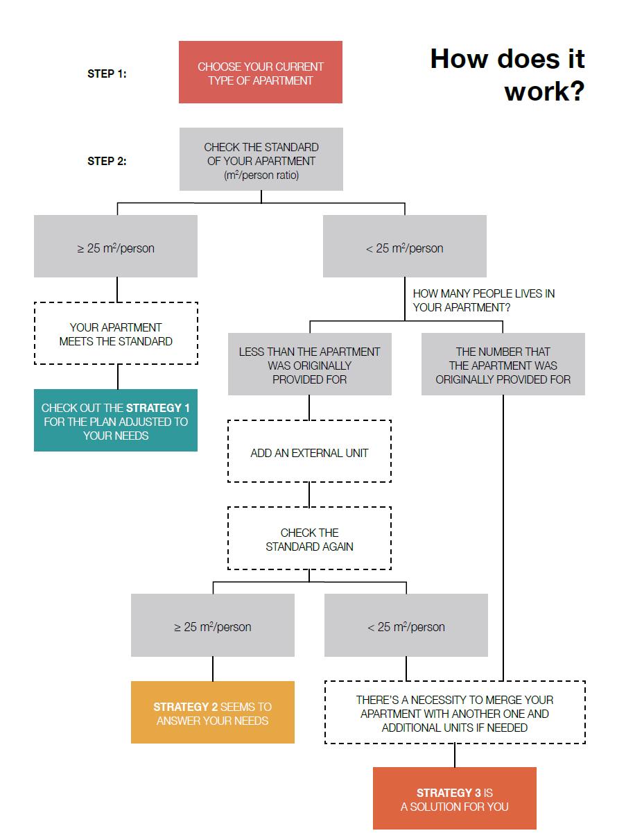 For instance, if the apartment was initially designed for four people, but there’s a deficit of 32 m 2 to meet the standard of 25 m 2 per person.