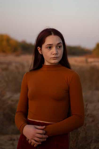 Il passo verso il volto di Serena inquadrata da Rachel Bujalski è breve. A distanza di decenni dalla figura precedente, si percepisce anche qui una situazione di disagio, un’indole inquieta e compromessa dalle esperienze della vita. Lo sguardo che sfugge l’obiettivo e l’atteggiamento chiuso del volto, assieme allo sfondo inespressivo, marcano lo spirito della giovane donna e ne leggono in filigrana l’imbarazzo.
