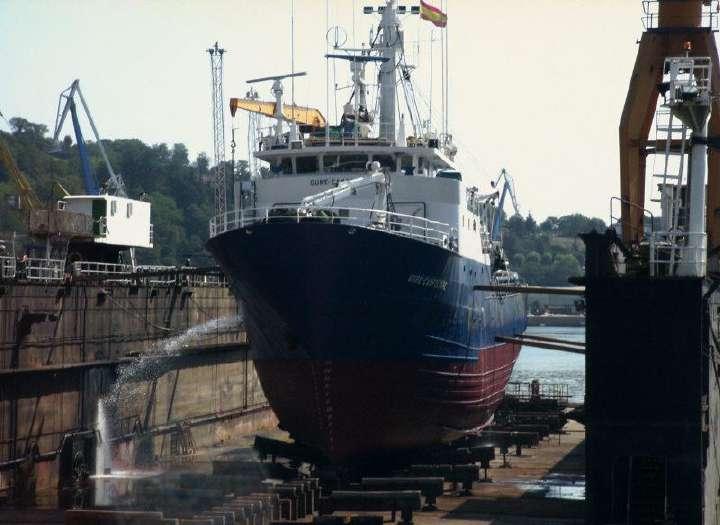 Vigo, 2000. El buque “Remolcagure Bat”, adquirido por “Remolcanosa” en el 2000. Un barco construido en Italia en 1968, de 56 m de eslora y 11,43 de manga, y convertido en hospital por el nuevo propietario.