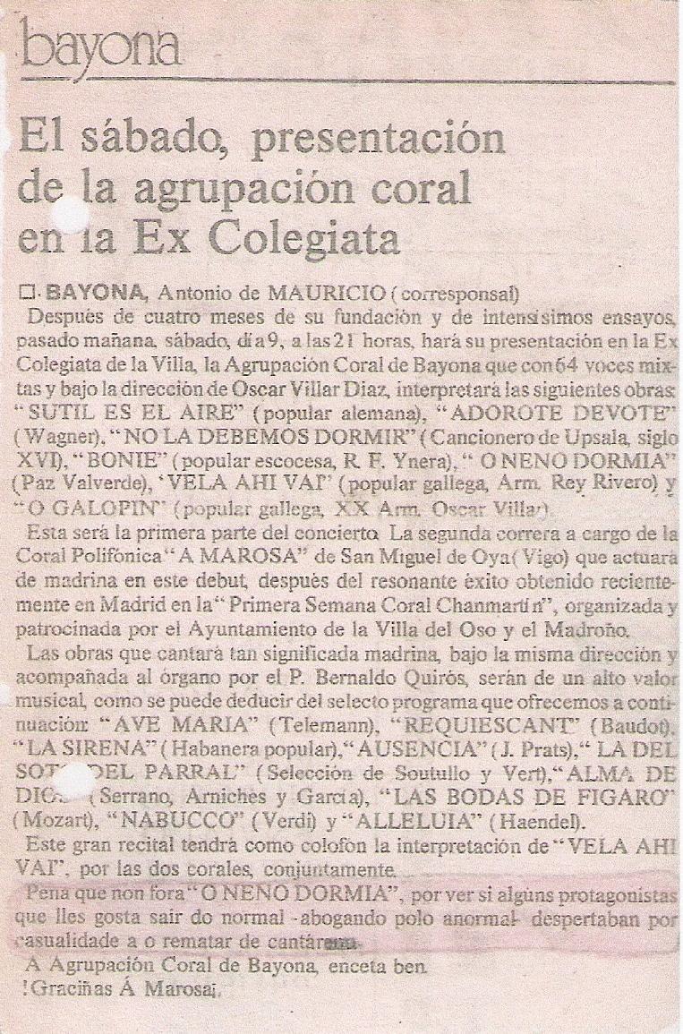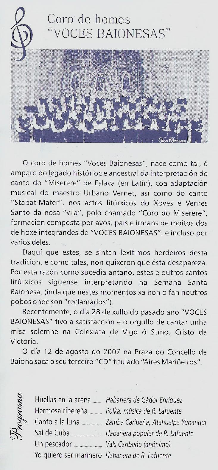Hace unos años, comentando con el matrimonio que ya eran pocos los chicos baioneses que vivían de la mar, que ahora