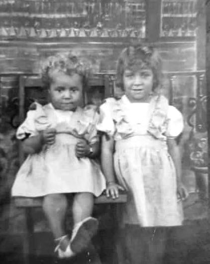 Baiona, 1944. Las hermanas “Luti” y Olga Leyenda Leyenda Pérez, con dos y cuatro años de edad. (Archivo familia Leyenda Pérez).