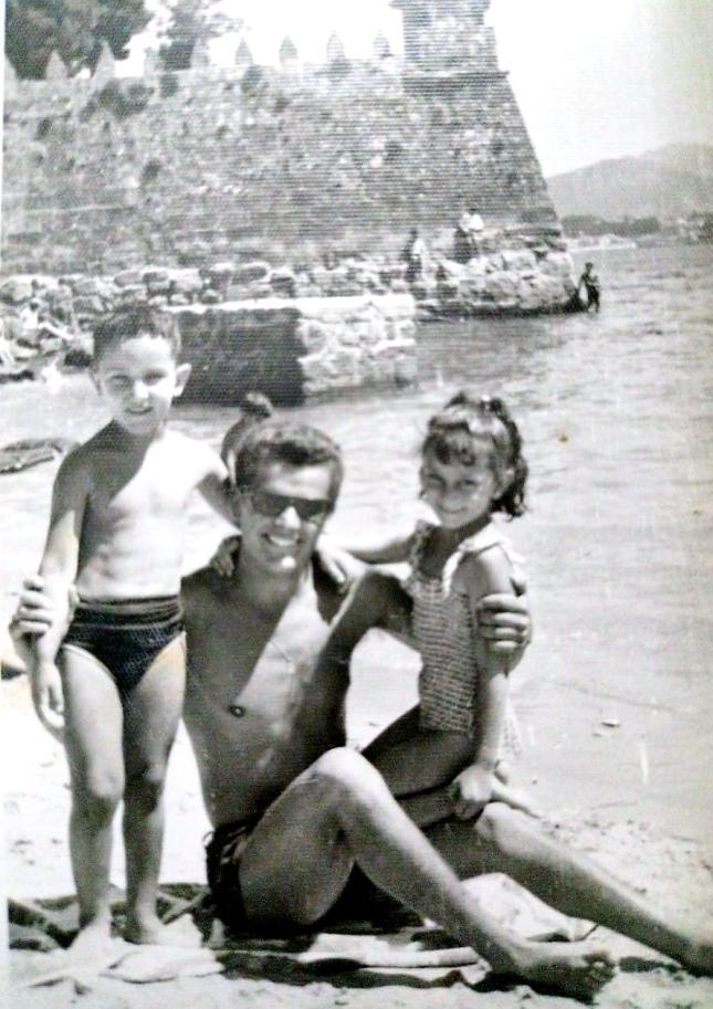 Baiona, principios de los años ochenta. Los tres hijos de “Pepa” y “Kiko”: Mónica, Francisco y Almudena. (Archivo familia Leyenda Pereira).