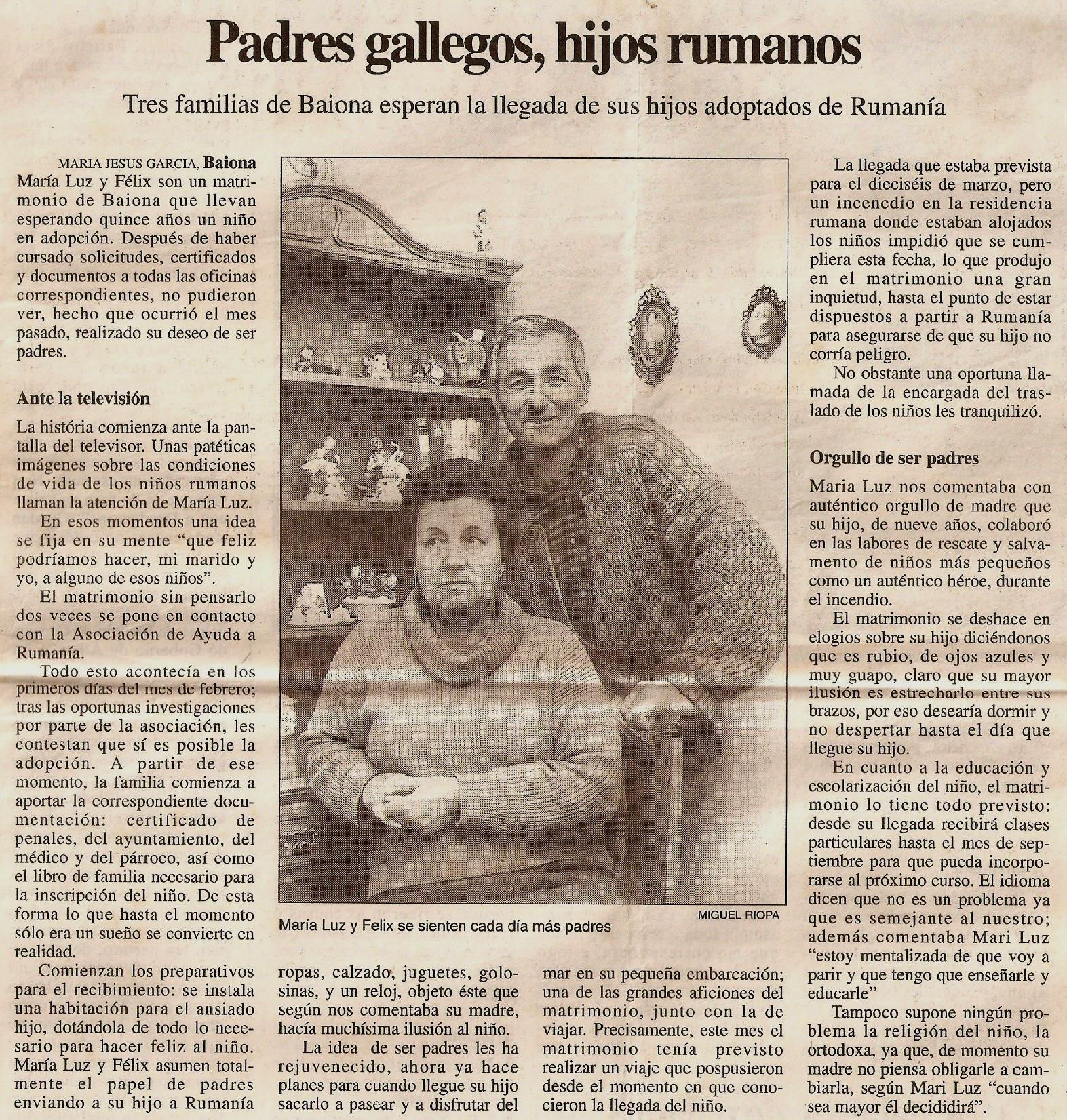 Solían venir de visita a Baiona cada tres o cuatro años, incluso traían a los niños, pero últimamente, debido a problemas de salud del marido, y también a la avanzada edad de ambos, han dejado de venir. Sin embargo está en permanente comunicación con sus hermanas “Luti” y Mary Paz.