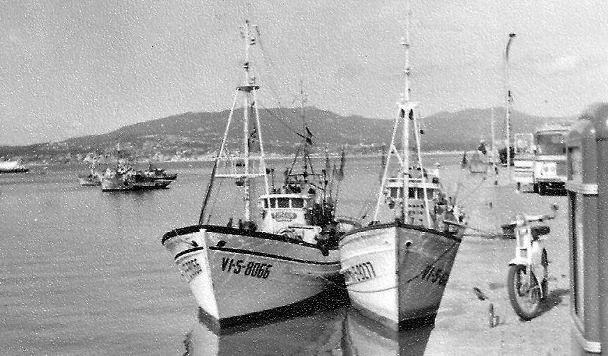pesquera de Galicia. Los “Espada” de Ramón Lojo, el “Pepe Nartallo”y el “Cachalote”-además de los citados anteriormente- de los Nartallo, el “MigueldeCervantes”de Ulpiano Vilar, el “Maciel”, el “Generosa” y el “Castor Maciel” de los Maciel, el “Norita”, el “Pinzón” , el “Erizana” y el “Titiño” de Florentino Vázquez, el “Jacobito”de los Fontán, el “Cadilla”de Vicente Cadilla, el “Feluco” de los “Charlot”, los “AlmuiñaIyII”, el “Lola Calvo” y el ”José Almuiña”de los Almuiña, el “SanPelayo”de los “Guaches”, el “San MartiñodeArriba”de Isaac, el “Balcagia”de Tito Durán, el “Playa deRecati”de Tito Naveira, el “Leyce”de Pablo Leyenda, el “Monchito”, el “José”de Juan Leyenda, el “PolicarpoVilar”, el “Clotilde Fernández” , el “Fumanchú” , el “JesúsVilar”, el “MartaElena”... de “Os Caringa”...