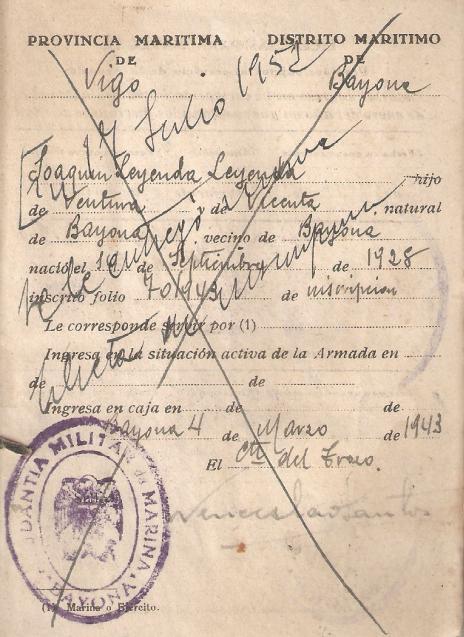 Finalizada la Guerra Civil, embarca sucesivamente en el “Ballenato” y en el “Canero”-barcos de la familia-, en el “Almuiña” y en el “Leyce”, este de su propiedad junto a su hijo y a su yerno, y en el que andaban “al espada”.