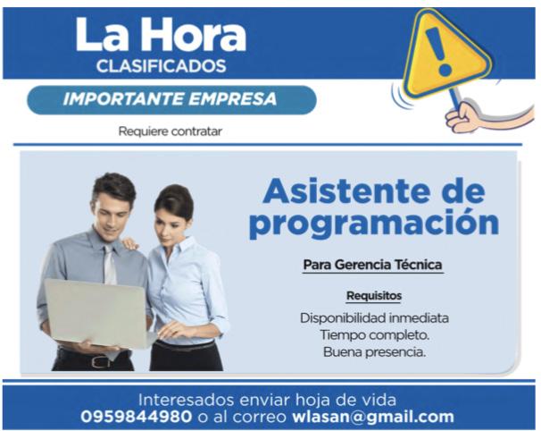 Publicidad: publicidad@lahora.com.ec Año: XL No. 13563 Los escritos de los colaboradores solo comprometen a sus autores y no reflejan el pensamiento del medio, que se expresa en su Editorial.