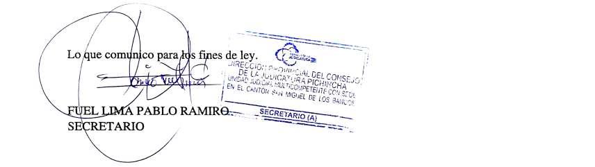 UNIDAD JUDICIAL MULTICOMPETENTE CON SDDE EN EL CANTÓN SAN MIGUEL DE LOS BANCOS, PROVINCIA DE PICHINCHA.