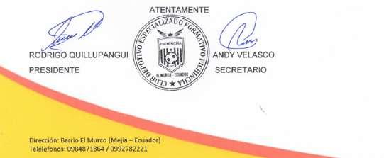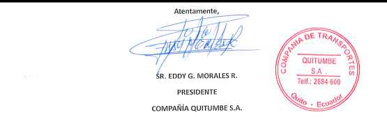 Atentamente, Sr. Nelson De La Cruz Representante legal COMFILTRAMPEC S.A.