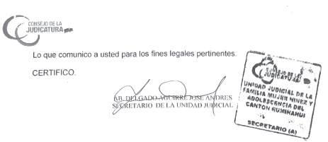 UNIDAD JUDICIAL DE FAMILIA, MUJER, NIÑEZ Y ADOLESCENCIA DEL CANTON RUMIÑAHUI-PROVINCIA DE PICHINCHA