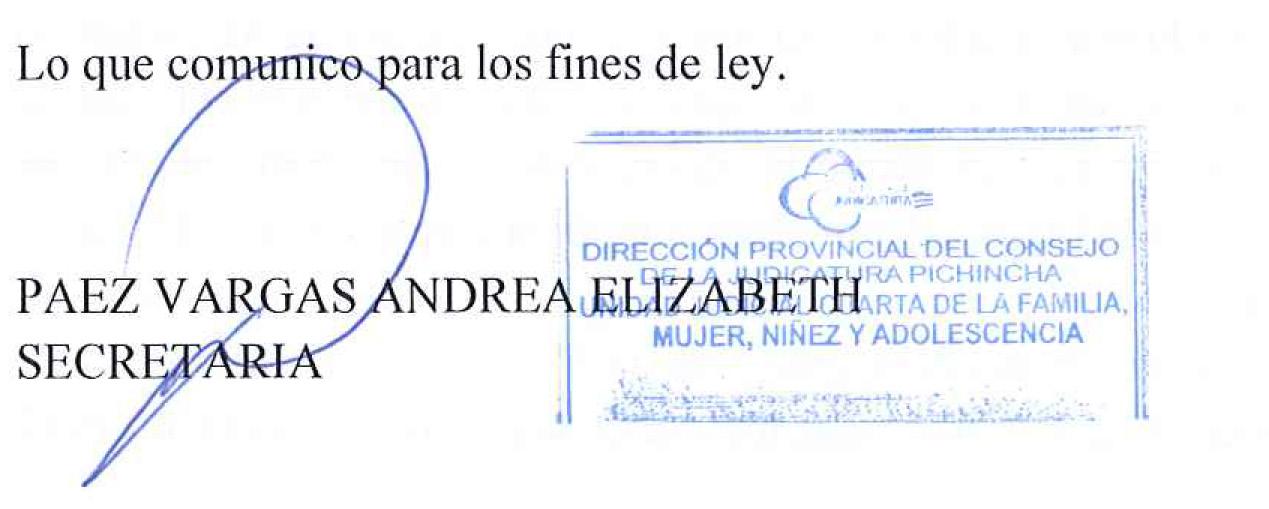 UNIDAD JUDICIAL DE FAMILIA , MUJER, NIÑEZ Y ADOLESCENCIA CON SEDE EN LA PARROQUIA IÑAQUITO DEL DISTRITO METROPOLITANO DE QUITO , PROVINCIA DE PICHINCHA.
