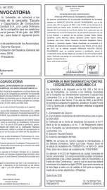 CONVOCATORIA A JUNTA GENERAL ORDINARIA DE SOCIOS DE LOGÍSTICA Y TRANSPORTE MANCERO IRAZABAL S.A.