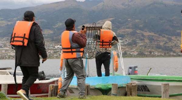 Aves nadan en un lago afectado por el fenómeno de El Niño