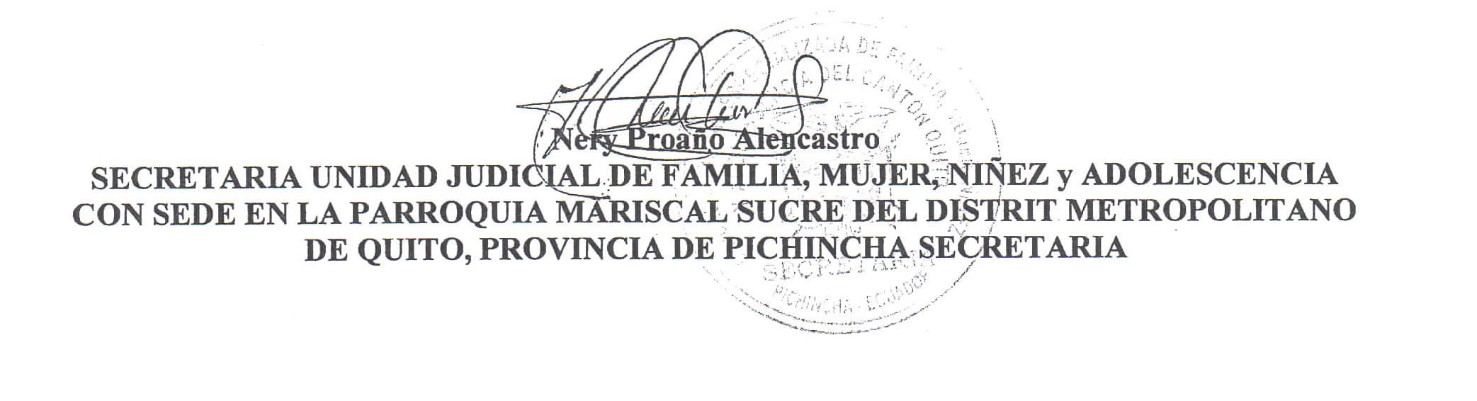 UNIDAD JUDICIA DE FAMILIA, MUJER, NIÑEZ Y ADOLESCENCIA CON SEDE EN LA PARROQUIA MARISCAL SECRE DEL DISTRITO METROPOLITANO DE QUITO