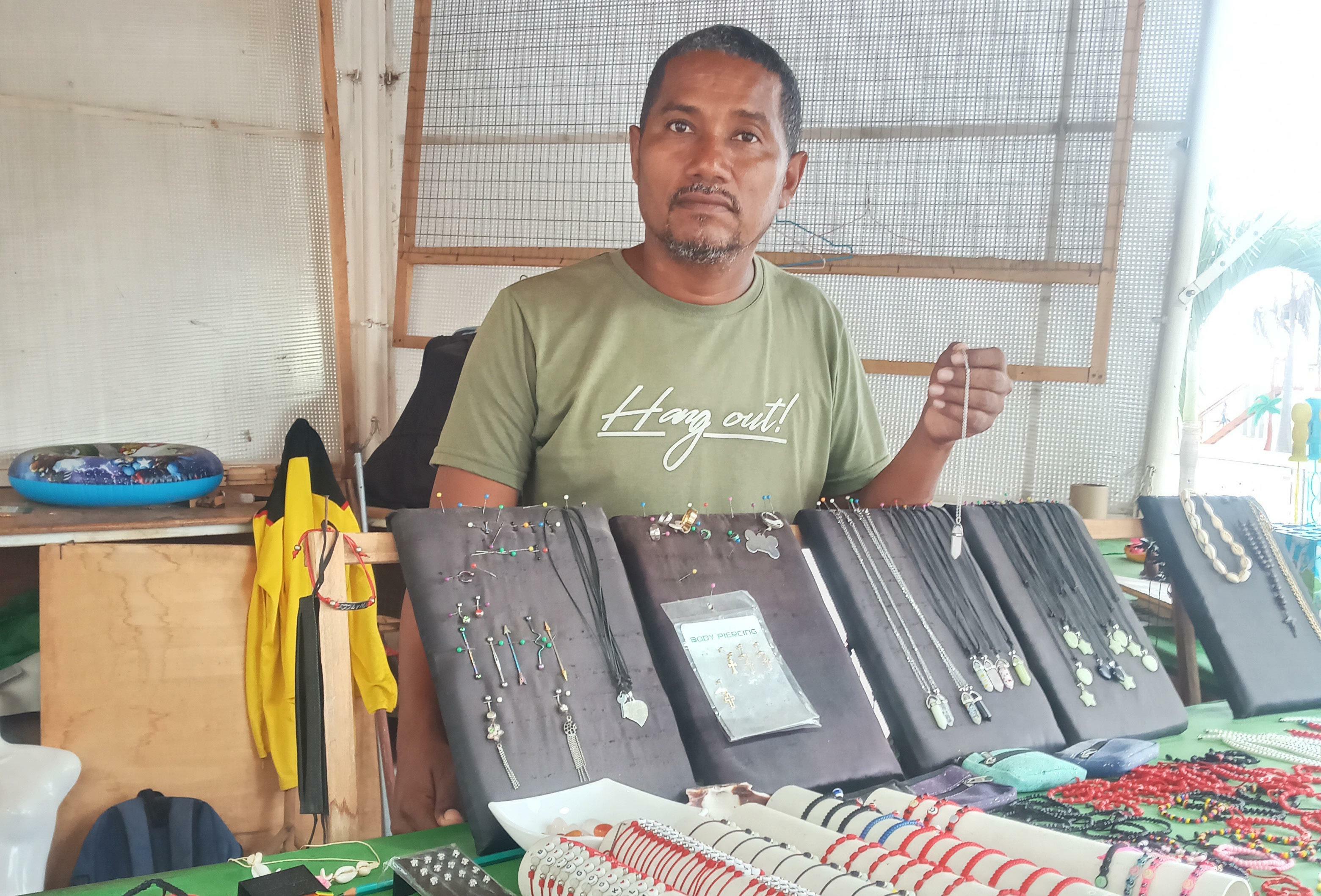 El artesano cuenta que aprendió a dar forma a distintos materiales con los que su tía trabajaba. Pero luego se capacitó en atención al cliente, relaciones humanas, marketing, incluso finanzas. Asegura que la organización de los comerciantes ayuda a la seguridad de los turistas. En el malecón Las Palmas hay arena, sol, todo adornado con el paisaje de los barcos petroleros. Hay hoteles, patios de comida, espacios de recreación.