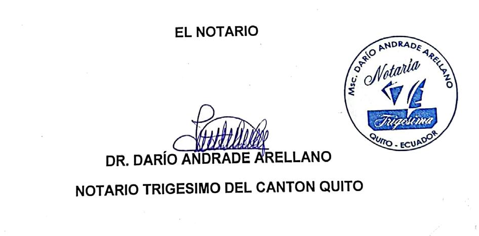 NOTARIA TRIGÉSIMA DEL CANTÓN QUITO: Cúmpleme poner en conocimiento del público que mediante escritura pública, otorgada ante mí DOCTOR DARÍO ANDRADE ARELLANO, NOTARIO