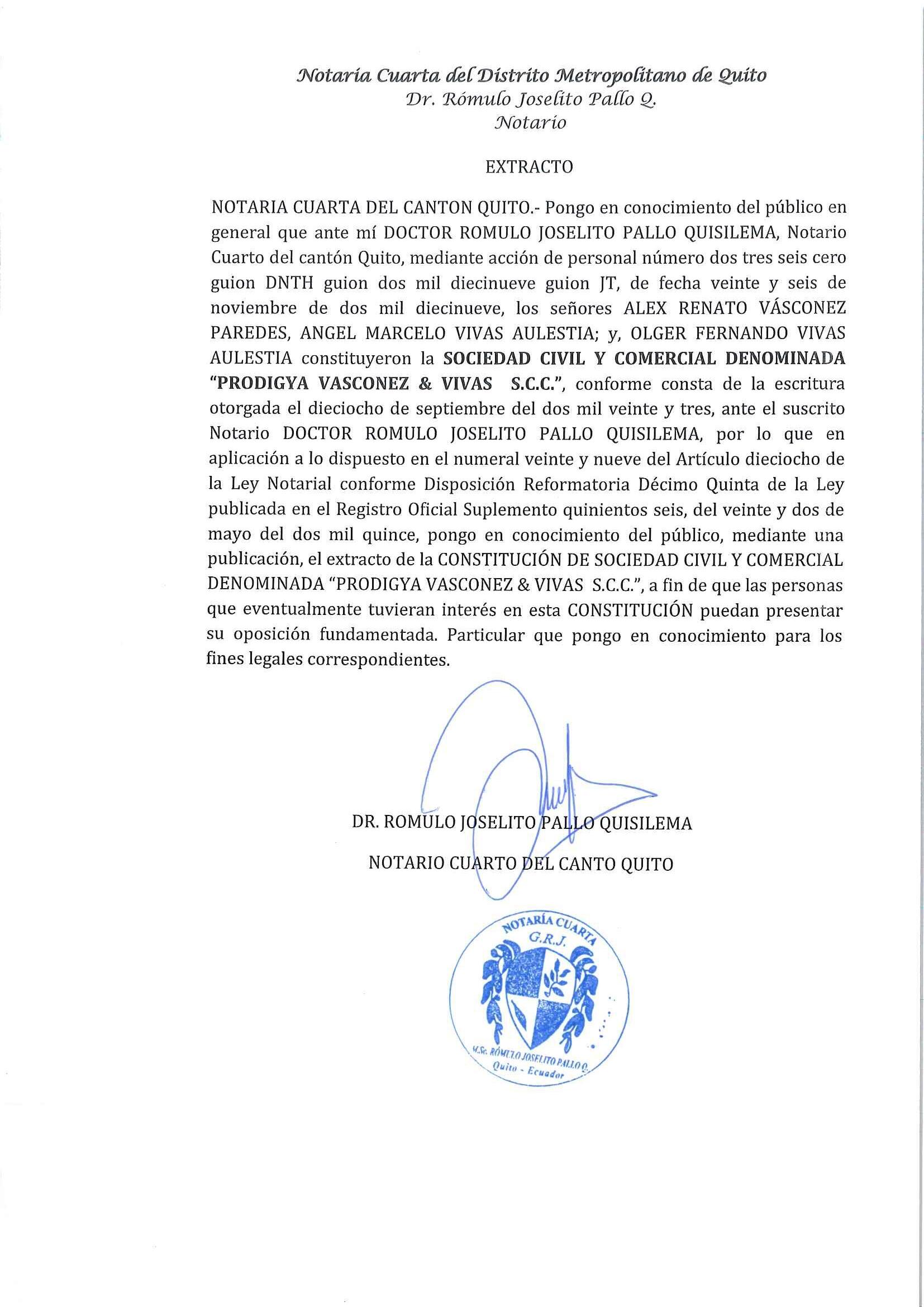 De conformidad con el Estatuto de la Compañía y la legislación ecuatoriana, los documentos que serán presentados y analizados en la Junta General Extraordinaria están a disposición de los accionistas en las oficinas de la compañía, ubicadas en la Av. Interoceánica OE673 Y González Suarez Edificio Picadilly Center, primer piso, Distrito Metropolitano de Quito. Especial e Individual se convoca a la Comisario de la Compañía economista Mónica Acosta Baca, con correo electrónico acosta_baca_monica@hotmail.com