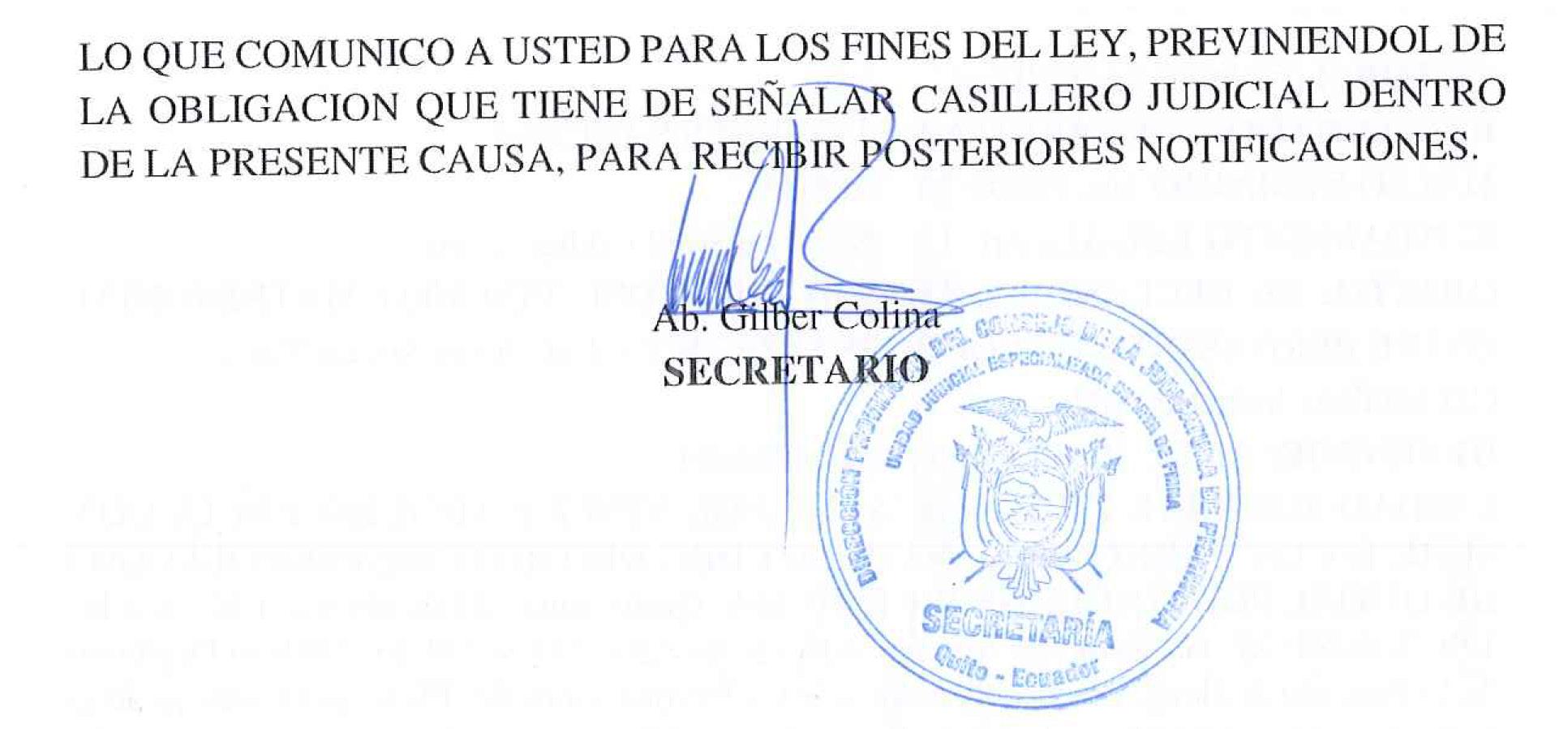 UNIDAD JUDICIAL MULTICOMPETENTE CON SEDE EN EL CANTÓN PEDRO VICENTE MALDONADO, PROVINCIA DE PICHINCHA. Pedro Vicente Maldonado, viernes 31 de marzo del 2023, a las 08h58. VISTOS: Dr. Fredy Chulde Obando.- Asumo conocimiento de la presente causa en mi calidad de Juez Titular de esta Judicatura según acción de personal No. 11482DNTH-RO-de fecha 16 de Octubre que rige a partir del 1 de Noviembre del 2013, y dispongo: Agréguese al proceso los escritos y anexo presentados por la parte actora.- En lo principal.- 1) CALIFICACIÓN: La demanda que antecede es clara, completa y reúne los demás requisitos establecidos en el Art. 142 del Código Orgánico General de Procesos, por lo que, se la califica acorde a lo señalado en el Art. 146 ibídem, y se acepta a trámite conforme al procedimiento sumario, tal como señala el Art. 575 del Código del Trabajo en concordancia con el Art. 333 del COGEP.- 2) CITACIÓN: Al amparo de lo estipulado en el Art. 53 del COGEP, se ordena citar al demandado, señor CRISTOBAL GILBERT CANGO JIMENEZ, en la dirección que indica la parte accionante en la demanda, de acuerdo con lo dispuesto en los Arts. 54 y 55 del citado Código, a través de la Oficina de Citaciones de esta Unidad Judicial; estableciendo que la parte accionada ejerza su legítimo derecho a la defensa, conforme lo dispone el Art. 76 de la Constitución de la República del Ecuador, y se le prevendrá de su deber procesal de comparecer a esta causa designando abogado patrocinador y de señalar domicilio judicial y/o correo electrónico, bajo prevenciones de continuar la causa en rebeldía.- Por cuanto, el actor ha proporcionado la dirección de correo electrónico del accionado, se ordena que se les haga conocer al demandado por este medio, el extracto de la demanda y del auto inicial, de lo cual, el Secretario dejará constancia en el sistema, sin perjuicio de la citación oficial que debe efectuarse.- La parte accionante dé acatamiento con el deber establecido en el Art. 83 numeral 1 de la Constitución de la República del Ecuador, y cumplirá con la citación a la parte accionada en el menor tiempo posible; además se requiere acercarse al archivo de esta dependencia judicial y proporcionar las copias necesarias para la gestión de citación; esto es, tres (3) ejemplares de las piezas procesales pertinentes, hecho lo cual remítase las boletas correspondientes a la Oficina de Citaciones para los fines de Ley.- 3) CONTESTACION A LA DEMANDA: Conforme lo señala el numeral 3 del Art. 333 en concordancia con el Art. 151 del COGEP, se concede el termino de 15 días a la parte demandada, una vez que haya sido citada, para que conteste a la demanda, en la forma que determinan las normas señaladas y anuncie la prueba respectiva como manifiesta el Art. 152 ibídem.- 4) AUDIENCIA ÚNICA: La audiencia única, se señalará una vez que sea citado el demandado conforme lo dispuesto en el Art. 333 numeral 4 del Código Orgánico General de Procesos, diligencia que a la que deben acudir las partes personalmente o mediante procurador judicial con cláusula especial para transigir de conformidad a lo que establece el numeral 1 del Art. 86 del citado Código.- 5) ANUNCIO DE PRUEBAS: Atendiendo el anuncio de pruebas de la parte demandante: i) En la Audiencia Única, recéptese el juramente deferido del actor solicitado en el enunciado Prueba Testimonial; además recéptese la declaración testimonial, de: Johny Hernan Loza Orbes, Jose Willan Orbes Sosa, Orbes Sosa Magdalena Senaida, Orbes Sosa Gloria Beatriz, María Guadalupe Jimenez Gaona, William Andres Paredes Hurtado, a quienes para su comparecencia se les notificará a través de la parte demandante; y, recéptese la declaración de parte del actor y demandado; no ha lugar la declaración de parte de Oscar Mauricio Jiménez Carrión, por no ser parte procesal.- ii) Incorpórese al expediente el documento que indica en el enunciado Prueba Documental, el mismo que de ser pertinente, útil y conducente será valorado en el momento procesal oportuno, según las reglas del COGEP.- iii) Ofíciese a la compañía Wester Union, AGROCALIDAD del cantón Pedro Vicente Maldonado, Registro de la propiedad de Pedro Vicente Maldonado, Jefatura Política del Cantón Pedro Vicente Maldonado, para que remitan a esta Judicatura la información requerida. No ha lugar la solicitud de oficiar al Registro de la propiedad de Pichincha, por cuanto no ha singularizado a dicha entidad pública.- 6) DOMICILIO JUDICIAL: Tómese en cuenta los correos electrónicos señalados por el actor para recibir sus notificaciones, así como la autorización conferida a la Abg. Gladys Cañar.- Actúe el Dr. José Bejarano Galarza en calidad de Secretario de este Despacho Judicial.- CITESE Y NOTIFIQUESE.- CHULDE OBANDO FREDY BOANERGES JUEZ (PONENTE).