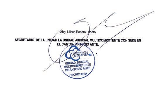 JUEZ DE LA CAUSA: DR. OSCAR EFREN CUENCA ORDOÑEZ JUEZ DE LA UNIDAD JUDICIAL MULTICOMPOTENTE CON SEDE EN EL CANTON ANTONIO ANTE, PROVINCIA DE IMBABURA.