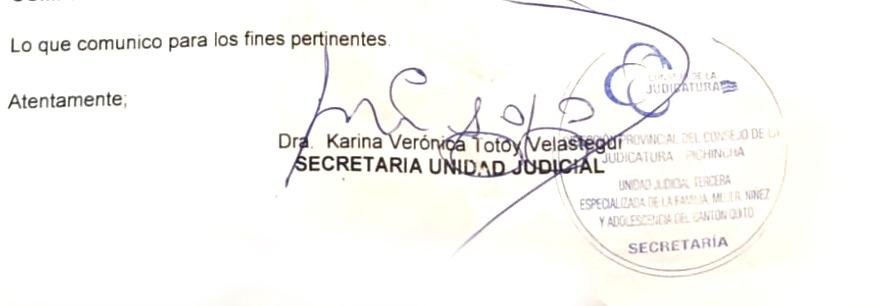 SECRETARIA: DRA. KARINA VERONICA TOTOY VELASTEGUI