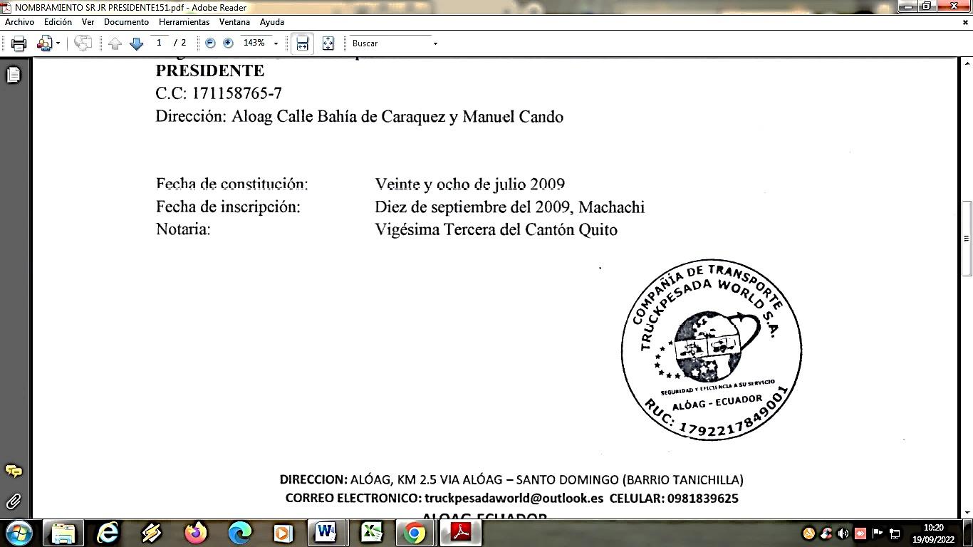 Nota.- se Convoca de manera individual a la señora Yolanda Cerón Comisaria de la Compañía.