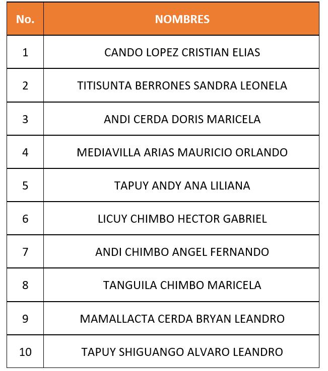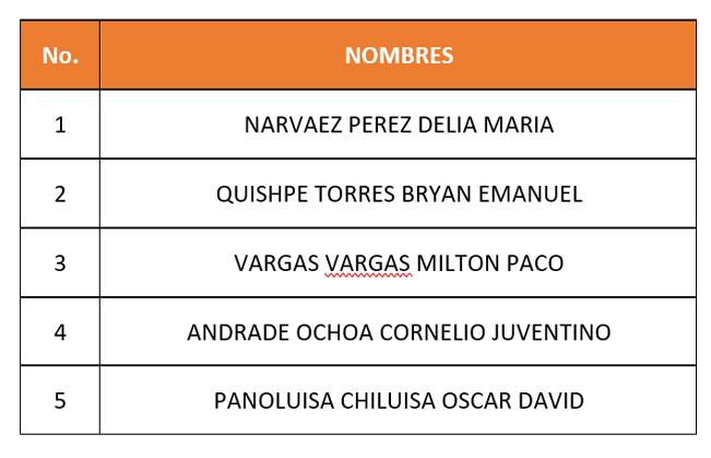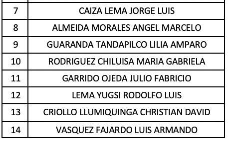 EDWIN MARCELO QUISHPE VITERI MARCO JOSE GUALPA MARCILLO PRESIDENTE/A SECRETARIO/A 1715477491 1710883115