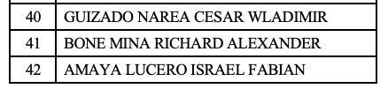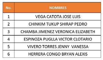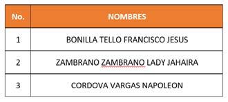Días nosotros: PIRACOCA RODRÍGUEZ ANNIE JUSTIN, SAN CHEZ RODRÍGUEZ EDISSON DAVID, FERNÁNDEZ ROJAS DIEGO ANDRES,