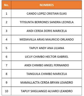EDWIN MARCELO QUISHPE VITERI MARCO JOSE GUALPA MARCILLO PRESIDENTE/A SECRETARIO/A 1715477491 1710883115