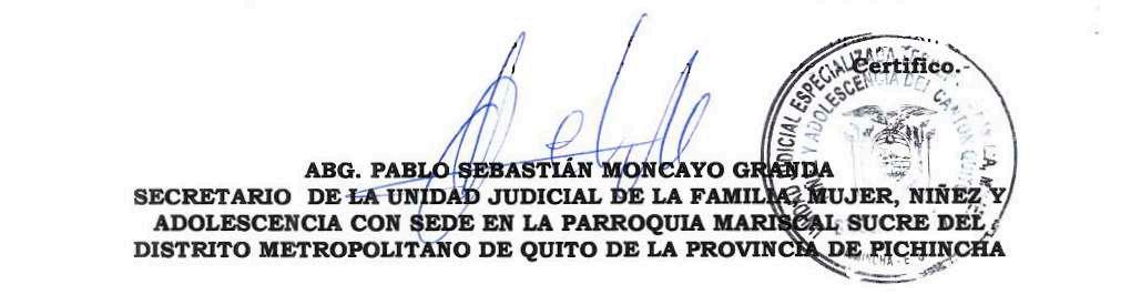 UNIDAD JUDICIAL DE FAMILIA, MUJER, NIÑEZ Y ADOLESCENCIA CON SEDE EN LA PARROQUIA MARISCAL SUCRE DEL DISTITO METROPOLITANO DE QUITO, PROVINCIA DE PICHINCHA.- Quito, martes 27 de septiembre de 2022, a las 11h18, VISTOS: DR. PABLO JACOME JARAMILLO, Juez Titular de este despacho avoco conocimiento de la presente causa en virtud del sorteo legal. Hágase parte del proceso el escrito y anexos presentados por la parte accionante de fecha 26 de septiembre del 2022, las 16h56.- [1] CALIFICACIÓN: La solicitud de dili gencia de apertura de caja o casillero de seguridad que antecede es clara, precisa y reúne los requisitos de Ley, por lo que se la admite a trámite contemplado en el Art. 121 del Código Orgánico General de Procesos.- [4] CITACIÓN, cítese en el lugar señalado en la demanda, al Represent ante Legal del Banco Pichincha, Agencia Norte, quien se encargará de notificar a los demás funcionarios cuya intervención sea necesaria para la práctica de la diligencia en legal y debida forma.- [5] La parte actora comparezca el 3 de octubre del 2022 a las 13h30 a la sala 13 del sexto piso de esta Unidad Judicial, con sus documentos personales originales y copias a color, a dar cumplimiento a lo dispuesto en el Art. 56 numeral 2 inciso segundo del Código Orgánico General de Procesos, esto es rindan juramento que, pese a las averiguaciones y GESTIONES que ha realizado, ha sido imposible determinar el domicilio o residencia de los presuntos y desconocidos herederos del cujus señor MANUEL EDUARDO VILLACIS MEYTHALER. Hecho que sea cítese por la prensa a los herederos presuntos y desconocidos del señor MANUEL EDUARDO VILLACIS MEYTHALER (padre), de conformidad con los Arts. 56 y 58 del Código Orgánico General de Procesos, esto es, mediante tres publicaciones por la prensa en uno de los periódicos de mayor circulación de la ciudad de Quito, en tres días distintos, para lo cual se proveerá del extracto cor respondiente.- Cuéntese con el GERENTE AGENCIA NORTE DEL BANCO PICHINCHA y con los interesados que se presenten haciendo valer sus derechos en forma legal, para lo cual remítase oficio a la SUCURSAL NORTE DEL BANCO PICHINCHA.- [6] Una vez que conste en autos haberse realizado la citación en legal y debida forma a petición de parte se señalara día y hora para la diligencia solicitada.- Téngase en cuenta el casillero judicial señalado y correo electrónico señalados así como la autorización conferida a su defensa.- [7] DOCUMENTOS: Agréguese a los autos los documentos que acompaña la parte actora en su demanda.- [8] NOTIFICACIONES: Tómese en cuenta la casilla judicial y el correo electrónico señalados por la parte accionante para sus notificaciones, así como la autorización conferida a su abogado defensor.- Actúe la Actúe el Abg. Pablo Moncayo Granda en calidad de secretario (E) de la Unidad.- CÍTESE, OFÍCIESE Y NOTIFÍQUESE. F). DR. PABLO ALEJANDRO JÁCOME JARAMILLO. JUEZ. UNIDAD JUDICIAL DE FAMILIA, MUJER, NIÑEZ Y ADOLESCENCIA CON SEDE EN LA PARROQUIA MARISCAL SUCRE DEL DISTITO METROPOLITANO DE QUITO, PROVINCIA DE PICHINCHA.- Quito, martes 4 de octubre de 2022, a las 09h49, Cumplida que ha sido la diligencia dispuesta en mandato judicial que antecede se dispone: CITACIÓN: Atento el juramento efectuado por los señores VILLACIS PASTOR SANTIAGO MANUEL y VILLACIS PASTOR MARTIN EDUARDO, cítese en legal y debida forma a los herederos presuntos y desconocidos del señor VILLACIS MEYTHALER MANUEL ADUARDO con el contenido de la demanda, conforme lo dispone el Art. 56 del Código Orgánico General de Procesos, por cuanto los accionantes han declarado bajo juramento desconocer el domicilio de los herederos presuntos y desconocidos del señor Villacis Meythaler Manuel Eduardo, CÍTESE mediante tres publicaciones efectuadas en un periódico de amplia circulación nacional y editado en esta ciudad de Quito provincia de Pichincha, para el efecto confiérase el extracto correspondiente.- NOTIFIQUESE.F). DR. PABLO ALEJANDRO JÁCOME JARAMILLO. JUEZ.