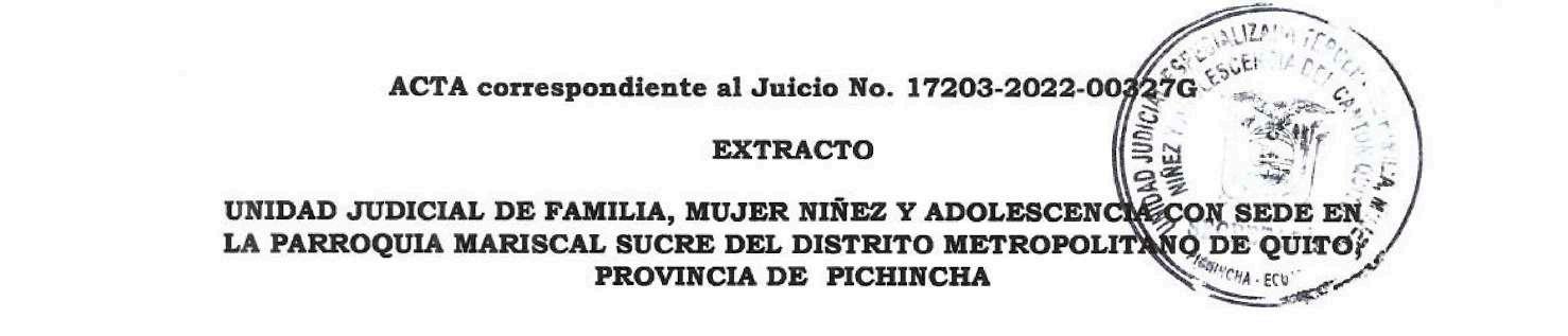 UNIDAD JUDICIAL DE FAMILIA, MUJER, NIÑEZ Y ADOLESCENCIA CON SEDE EN LA PARROQUIA MARISCAL SUCRE DEL DISTITO METROPOLITANO DE QUITO, PROVINCIA DE PICHINCHA.- Quito, martes 27 de septiembre de 2022, a las 11h18, VISTOS: DR. PABLO JACOME JARAMILLO, Juez Titular de este despacho avoco conocimiento de la presente causa en virtud del sorteo legal. Hágase parte del proceso el escrito y anexos presentados por la parte accionante de fecha 26 de septiembre del 2022, las 16h56.- [1] CALIFICACIÓN: La solicitud de dili gencia de apertura de caja o casillero de seguridad que antecede es clara, precisa y reúne los requisitos de Ley, por lo que se la admite a trámite contemplado en el Art. 121 del Código Orgánico General de Procesos.- [4] CITACIÓN, cítese en el lugar señalado en la demanda, al Represent ante Legal del Banco Pichincha, Agencia Norte, quien se encargará de notificar a los demás funcionarios cuya intervención sea necesaria para la práctica de la diligencia en legal y debida forma.- [5] La parte actora comparezca el 3 de octubre del 2022 a las 13h30 a la sala 13 del sexto piso de esta Unidad Judicial, con sus documentos personales originales y copias a color, a dar cumplimiento a lo dispuesto en el Art. 56 numeral 2 inciso segundo del Código Orgánico General de Procesos, esto es rindan juramento que, pese a las averiguaciones y GESTIONES que ha realizado, ha sido imposible determinar el domicilio o residencia de los presuntos y desconocidos herederos del cujus señor MANUEL EDUARDO VILLACIS MEYTHALER. Hecho que sea cítese por la prensa a los herederos presuntos y desconocidos del señor MANUEL EDUARDO VILLACIS MEYTHALER (padre), de conformidad con los Arts. 56 y 58 del Código Orgánico General de Procesos, esto es, mediante tres publicaciones por la prensa en uno de los periódicos de mayor circulación de la ciudad de Quito, en tres días distintos, para lo cual se proveerá del extracto cor respondiente.- Cuéntese con el GERENTE AGENCIA NORTE DEL BANCO PICHINCHA y con los interesados que se presenten haciendo valer sus derechos en forma legal, para lo cual remítase oficio a la SUCURSAL NORTE DEL BANCO PICHINCHA.- [6] Una vez que conste en autos haberse realizado la citación en legal y debida forma a petición de parte se señalara día y hora para la diligencia solicitada.- Téngase en cuenta el casillero judicial señalado y correo electrónico señalados así como la autorización conferida a su defensa.- [7] DOCUMENTOS: Agréguese a los autos los documentos que acompaña la parte actora en su demanda.- [8] NOTIFICACIONES: Tómese en cuenta la casilla judicial y el correo electrónico señalados por la parte accionante para sus notificaciones, así como la autorización conferida a su abogado defensor.- Actúe la Actúe el Abg. Pablo Moncayo Granda en calidad de secretario (E) de la Unidad.- CÍTESE, OFÍCIESE Y NOTIFÍQUESE. F). DR. PABLO ALEJANDRO JÁCOME JARAMILLO. JUEZ. UNIDAD JUDICIAL DE FAMILIA, MUJER, NIÑEZ Y ADOLESCENCIA CON SEDE EN LA PARROQUIA MARISCAL SUCRE DEL DISTITO METROPOLITANO DE QUITO, PROVINCIA DE PICHINCHA.- Quito, martes 4 de octubre de 2022, a las 09h49, Cumplida que ha sido la diligencia dispuesta en mandato judicial que antecede se dispone: CITACIÓN: Atento el juramento efectuado por los señores VILLACIS PASTOR SANTIAGO MANUEL y VILLACIS PASTOR MARTIN EDUARDO, cítese en legal y debida forma a los herederos presuntos y desconocidos del señor VILLACIS MEYTHALER MANUEL ADUARDO con el contenido de la demanda, conforme lo dispone el Art. 56 del Código Orgánico General de Procesos, por cuanto los accionantes han declarado bajo juramento desconocer el domicilio de los herederos presuntos y desconocidos del señor Villacis Meythaler Manuel Eduardo, CÍTESE mediante tres publicaciones efectuadas en un periódico de amplia circulación nacional y editado en esta ciudad de Quito provincia de Pichincha, para el efecto confiérase el extracto correspondiente.- NOTIFIQUESE.F). DR. PABLO ALEJANDRO JÁCOME JARAMILLO. JUEZ.