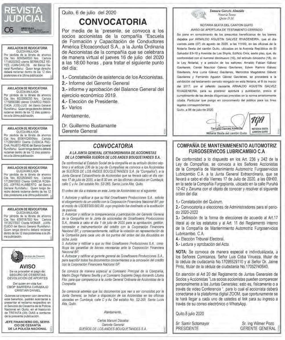 Se anuncia la pérdida de una póliza de depósito a plazo fjo con número 10DPF000734866 de la Cooperativa de la Policía Nacional, a nombre de Manuel Amadeo Samaniego Guerrero, en caso de conocer de mencionado documento contactarse al WhatsApp +593 99 743 5085
