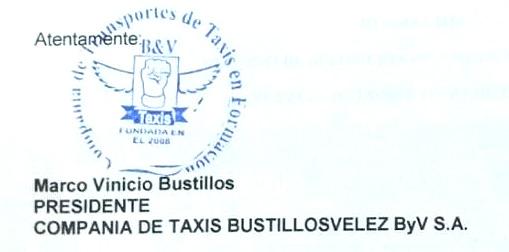 El señor Marco Bustillos en calidad de PRESIDENTE de la COMPAÑIA DE TAXIS BUSTILLOSVELEZ ByV S.A. procede a convocar a una Junta General Ordinaria de Socios y/o Accionistas a desarrollarse el día: JUEVES 24 DE JUNIO DEL 2023 A LAS 16:00 P.m. (4 de la TARDE)