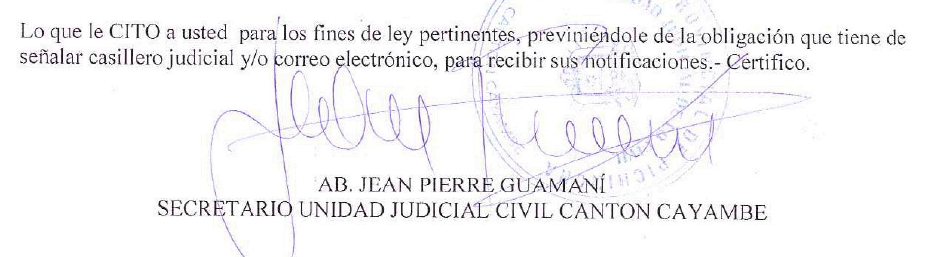 SECRETARIO: AB. JEAN PIERRE GUAMANI