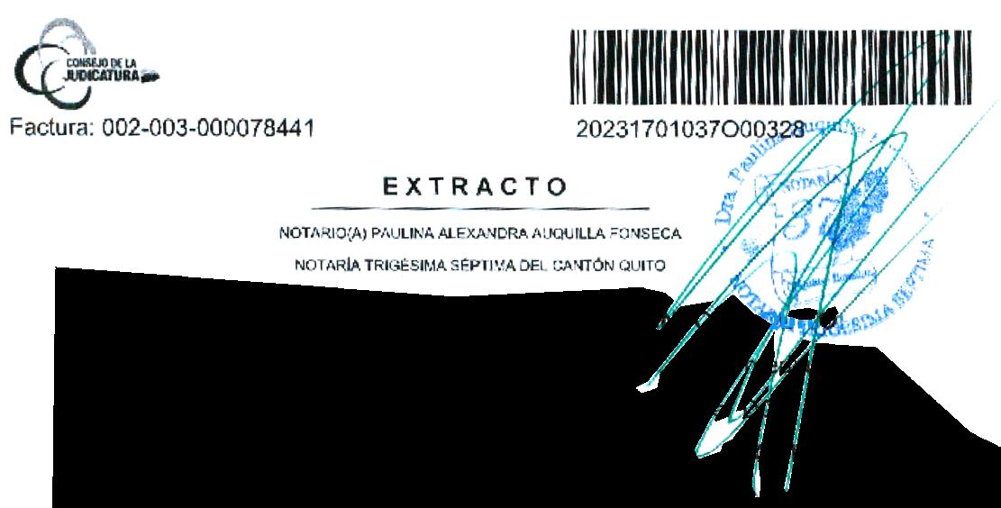 JOSE MANUEL CHILIG BAUTISTA; y la señora MARIA ROSARIO YANGUICELA, otorgada mediante escritura pública de treinta de Marzo del dos mil veintitrés, ante la suscrita Doctora Eliana Calero Núñez, Notaria Pública Tercera del Cantón Mejía, por el término de veinte (20) días a contarse desde la fecha de publicación de este extracto, a fin de que las personas que eventualmente tuvieren interés en esta liquidación puedan presentar su oposición fundamentada, dentro del referido término.