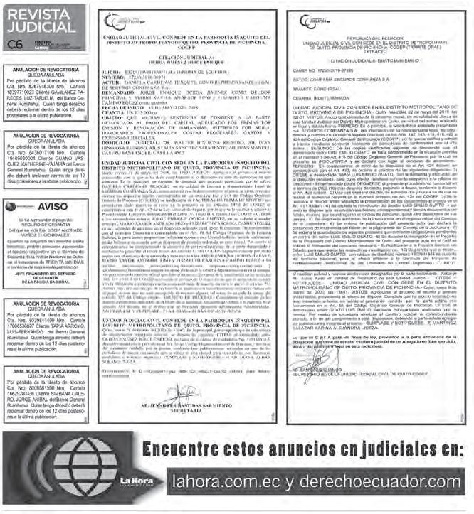 Directora Nacional Gabriela Vivanco Salvador Editor General: Jean Cano Redacción: editorgeneral@lahora.com.ec Publicidad: publicidad@lahora.com.ec