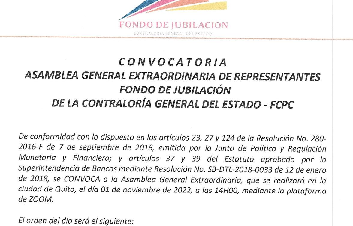 De conformidad con lo establecido en la Ley de Compañías y el artículo séptimo del Estatuto Social de la Compañía, se convoca a los señores socios a la Junta Extraordinaria de Socios que se realizará el día viernes 28 de octubre del 2022 a las 10:00, en las oficinas ubicadas en las calles Ángel Ludeña Oe6-119 y Pedro de Mendoza, para tratar el siguiente y único punto del orden del día: