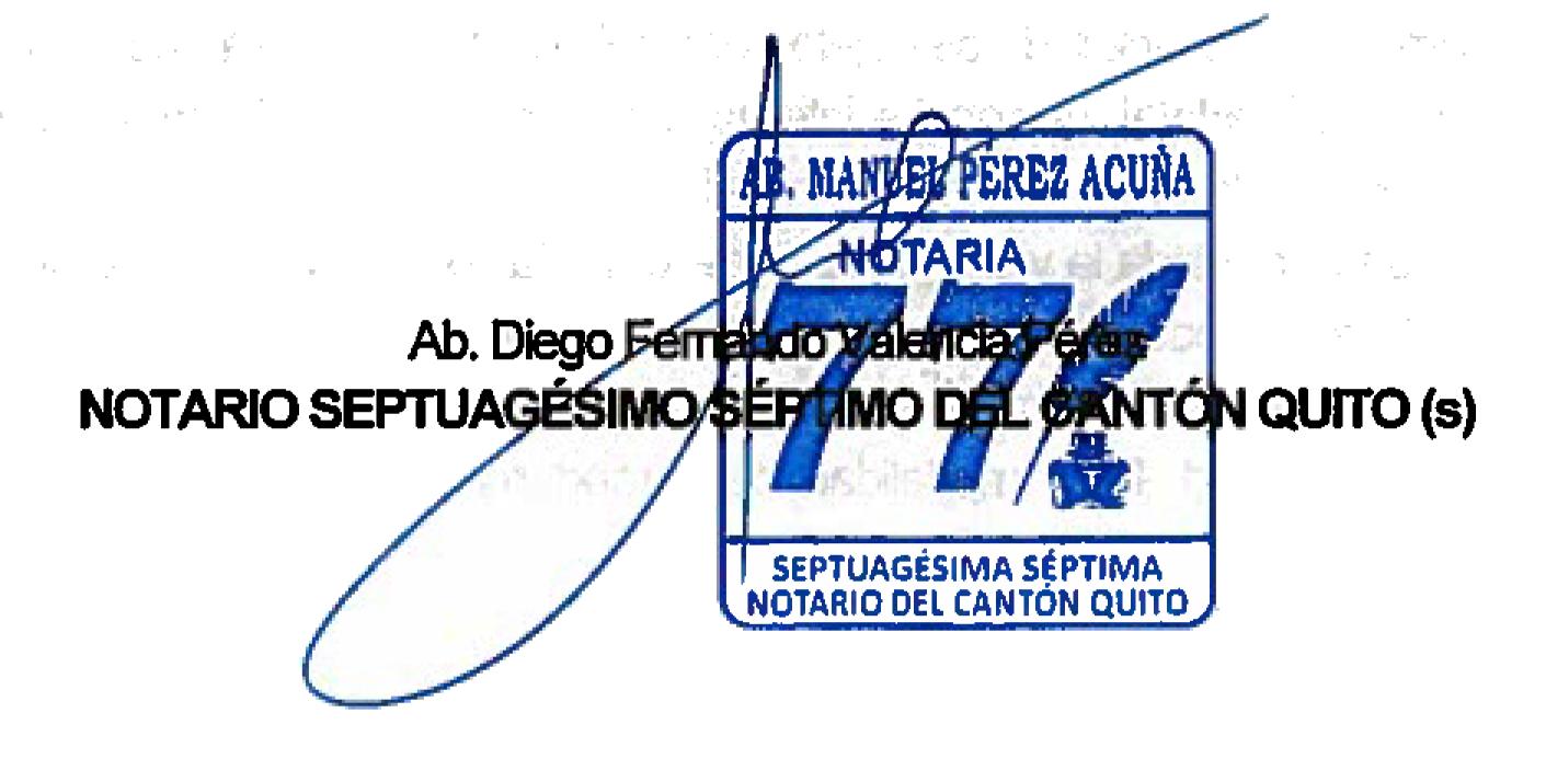 En conformidad con el artículo 18 numeral 29 de la Ley Notarial, para los fines legales consiguientes, en mi calidad de Notario Septuagésimo Séptimo Suplente del cantón Quito, Distrito Metropolitano, conforme acción de personal número 09002-DP17-2023-VS de fecha cinco (05) de septiembre del año dos mil veintitrés (2023), DOY AVISO y hago conocer, que el día 15 DE SEPTIEMBRE DEL 2023; los señores OLGA CHU SAM, de estado civil divorciada, por sus propios y personales derechos; el señor JAVIER CHUJON SAM, de estado civil casado, por sus propios y personales derechos, la señora MARGARITA CHUJON SAM, de estado civil casada, por sus propios y personales derechos; y, el señor ROBERTO CHUJON SAM, de estado civil casado, por sus propios y personales derechos, de nacionalidad ecuatoriana, con domicilio en esta ciudad de Quito, otorgaron en esta notaría una escritura pública, que contiene la CONSTITUCION DE LA SOCIEDAD CIVIL Y COMERCIAL cuya razón social es: “ALFARENT S.C.C”, con domicilio en esta ciudad de Quito, Objeto Social: La Sociedad Civil y Comercial, tendrá por objeto: A) Las actividades de arrendamiento de bienes inmuebles, en especial el alquiler y explotación de bienes inmuebles propios o arrendados, tales como edificios de apartamentos y viviendas; edificios no residenciales, incluso salas de exposiciones; oficinas, instalaciones para almacenaje, bodegas, fábricas, parqueaderos, locales y centros comerciales, terrenos y demás bienes inmuebles. Incluye el alquiler de casas, oficinas, locales comerciales , fábricas y apartamentos amueblados o sin amueblar por períodos largos, en general por meses o por años.- B) Las actividades de construcción, planificación, diseño, decoración, comercialización, compra y venta de inmuebles para habitación, comerciales, edificaciones, departamentos, oficinas, casas, condominios, urbanizaciones, conjuntos, y construcciones afines.- C) La comercialización, importación, compra, venta, constitución de derechos de uso y habitación, usufructo, comodatos y/o préstamos de uso, y arrendamiento de bienes muebles e inmuebles, materias primas y maquinaria para la consecución de su objeto principal; de igual manera podrá intervenir en cualquier contratación estatal, nacional e internacional en aspectos de arrendamiento y la construcción a las que la sociedad intervenga.- D) Actividades de alquiler de un bien que cubra aproximadamente toda la vida útil previsible del mismo, según el cual, el arrendatario adquiere virtualmente todos los derechos de usufructo y asume todas los riesgos inherentes a la propiedad del bien. Al término del arrendamiento puede haber o no traspaso a la propiedad. Esta modalidad de arrendamiento cubre la totalidad de los costos, incluidos intereses. E) La administración de edificios propios o arrendados y administración de servicios de oficinas centrales; así como las actividades de inversiones en bienes inmuebles efectuados por cuenta propia o por parte de otros intermediarios financieros y/o sociedades de inversión inmobiliaria.- F) A efectos de cumplir con este objeto, podrá celebrar toda clase de actos y contratos civiles, mercantiles o de otra naturaleza permitidos por las leyes ecuatorianas, por tanto la sociedad podrá contratar o convenir con otra u otras Sociedades, Asociaciones o Compañías cuyo objeto social sea análogo, similar o conexo con su propio objeto.- G) Para el cumplimiento de su objeto, la Sociedad podrá intervenir como socio en la formación de toda clase de sociedades o compañías, aportar capital a las mismas o adquirir, poseer acciones, obligaciones o participaciones de oras compañías; podrá fusionarse con sociedades similares a su actividad, podrá formar consorcios con personas naturales o jurídicas, nacionales o extranjeras; podrá intervenir en cualquier contratación estatal, nacional e internacional; y podrá aceptar y ejercer agencias y representaciones de sociedades afines nacionales y extranjeras, o de personas naturales nacionales o extranjera que tengan relación con su objeto social.- En general, la Sociedad podrá realizar toda clase de actos, contratos y operaciones permitidas por las leyes ecuatorianas, que sean acordes con su objeto y necesarios y convenientes para su cumplimiento.- La Sociedad no podrá dedicarse a ninguna actividad incompatibles con su objeto social, o prohibidas por la ley.- El tiempo de duración de la Sociedad Civil y Comercial será de CINCUENTA AÑOS contados a partir de la fecha de inscripción en el Registro Mercantil. Los aportes de cada socio se encuentran detallados de la siguiente forma: