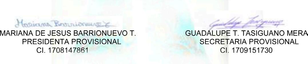 Atentamente, Raúl Aucancela Mora PRESIDENTE PROVICIONAL Henry Vargas SECRETARIO PROVISIONAL
