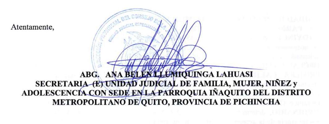 UNIDAD JUDICIAL DE LA FAMILIA, MUJER, NIÑEZ Y ADOLESCENCIA CON SEDE EN EL CANTON TENAPROVINCIA DE NAPO NAPO-TENA