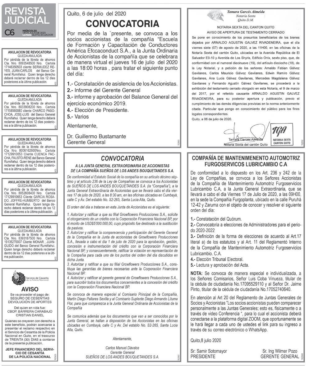 De conformidad con el art, 236 de Ley de Compañías y el Estatuto Social de la compañia, se convoca a los señores accionistas, a la Junta General Extraordinaria,a realizar el dìa Jueves 2 de febrero del 2023, a partir de las 17:30 horas, en la casa comunal del barrio La Quintana, ubicada en la calle Principal y calle Tercera del Distrito Metropolitano de Quito. Con el siguiente orden del día.