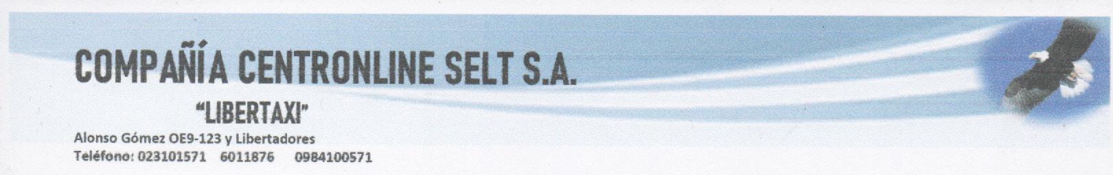 De conformidad con las disposiciones estatutarias, en los artículos 30 -32 -33-34-35-42 -43 y la ley de compañías en los artículos 231- 235 -236 Y 237, se convoca a los señores accionistas de la COMPAÑÍA DE TRANSPORTE EN TAXIS CENTRONLINE SELT S.A., a la Junta General Extra Ordinaria, que se realizara: