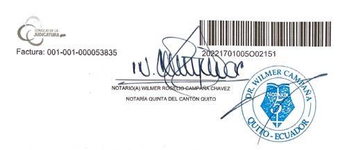 OTORGADA POR: NOTARIO QUINTO DEL CANTON QUITO: