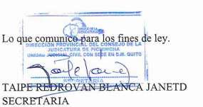 Lo que le NOTIFICO Y LE CITO a usted, para los fines de Ley.- Se le previene de la obligacion que tiene de señalar la casilla judicial de un Abogado y correo elec trónico como dispone la Ley, para que reciba sus notificaciones