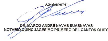 NOTARIA QUINCUAGÉSIMA PRIMERA DEL CANTON QUITO: MEDIANTE ESCRITURA DE CONSTITUCION DE LA SOCIEDAD CIVIL Y COMERCIAL; denominada CONSTITUCION DE LA SOCIEDAD CIVIL Y COMERCIAL ARUPOS S.C.C., CELEBRADA EN ESTA NOTARIA, EL VEINTE Y TRES DE DICIEMBRE DE DOS MIL VEINTE Y DOS. PROCEDEN A LA CESION DE PARTICIPACIONES, CUYOS ESTATUTOS SE ENCUENTRAN DETALLADOS EN LA ESCRITURA REFERIDA ANTERIORMENTE, POR LO QUE EN APLICACIÓN A LO DISPUESTO, EL ARTICULO DIECIOCHO DE LA LEY NOTARIAL AGREGANDO VARIOS NUMERALES, Y AL NO HABER OPOSICION ALGUNA DENTRO DEL REFERIDO TÉRMINO, ENTRE LOS CUALES EL NUMERAL VEINTITRES FACULTA AL NOTARIO DISPONER LA INSCRIPCIÓN EN EL REGISTRO MERCANTIL; Y, POR LO TANTO DISPONGO LA INSCRIPCION DE LA ESCRITURA DE CONSTITUCION DE LA SOCIEDAD CIVIL Y COMERCIAL; denominada CONSTITUCION DE LA SOCIEDAD CIVIL Y COMERCIAL ARUPOS S.C.C., ANTES MENCIONADA EN EL REGISTRO MERCANTIL DEL ECUADOR CORRESPONDIENTE. Por la atención brindada al presente, anticipo mi agradecimiento. 001-004-2415