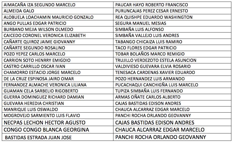 DESCONOCIDOS DE LOS SEÑORES JOSE ELIAS JACOME CHICAISA, JOSE MANUEL JACOME CHICAIZA y JOSE IGNACIO JACOME CHICAIZA