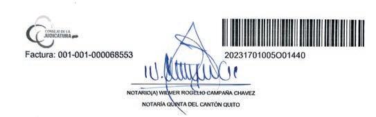 Lo que comunico a usted para los fines de ley, previniéndole de la obligación de señalar casilla judicial, en ciudad de Quito, Provincia de Pichincha, para posteriores notificaciones.